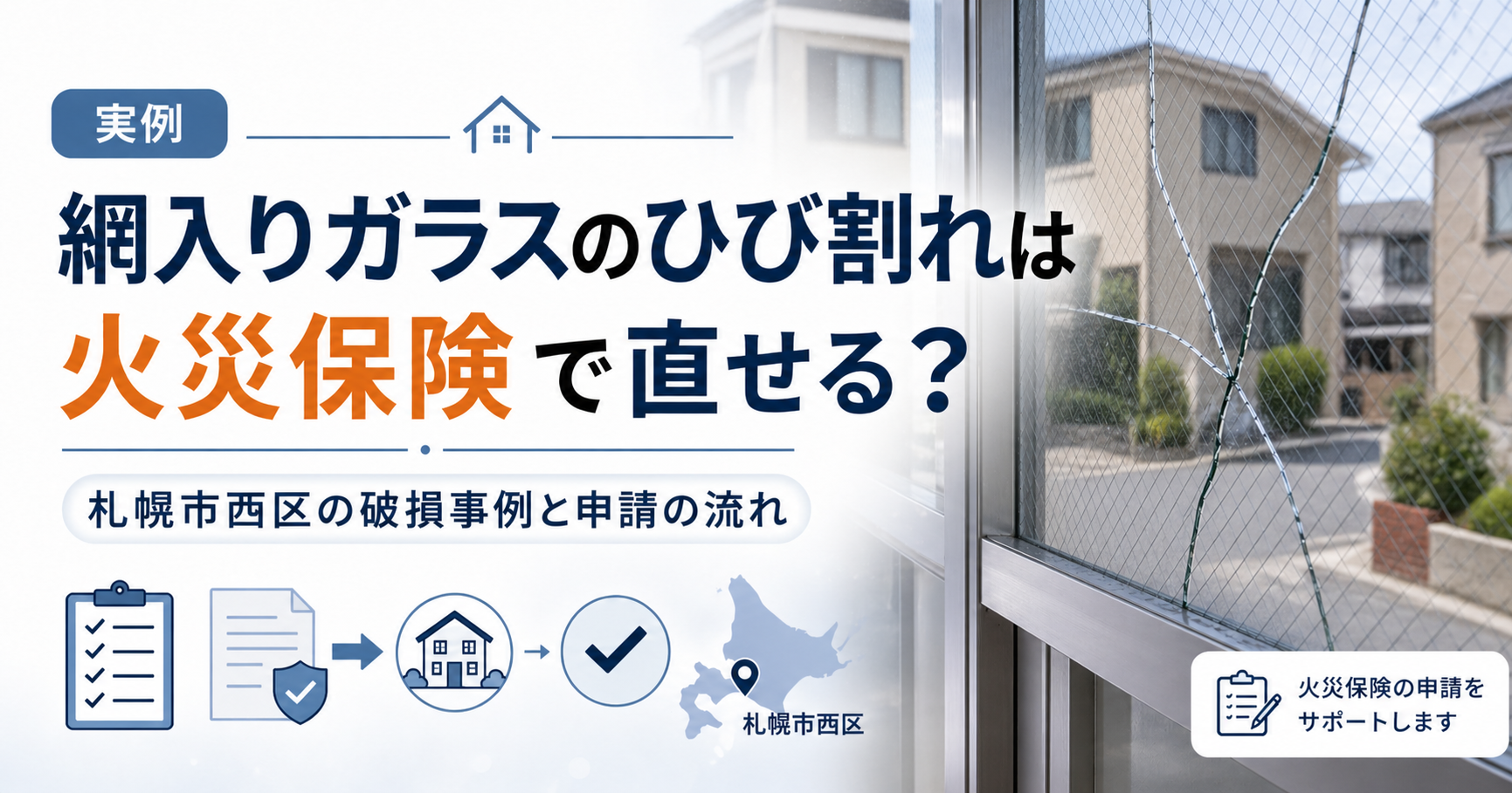 北海道では、秋から冬にかけての寒暖差により、網入りガラスに突然ひびが入る「熱割れ」が発生することがあります。北嶺建設でも、保険金の範囲内でガラス交換を行えた事例があります。