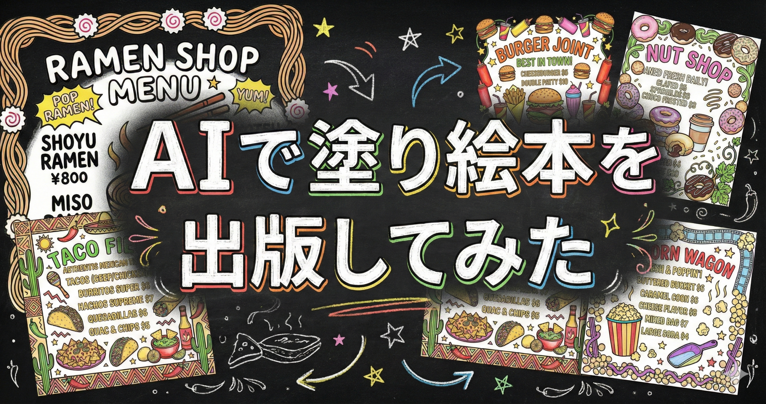 この記事では、黒板メニューをテーマにした「ショップ看板塗り絵シリーズ」が