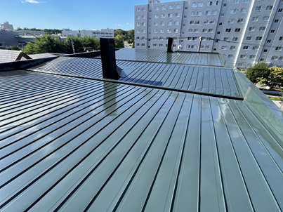 今回のアパートは金属屋根で、経年に伴う色あせ・一部の錆が見られる状態でした。