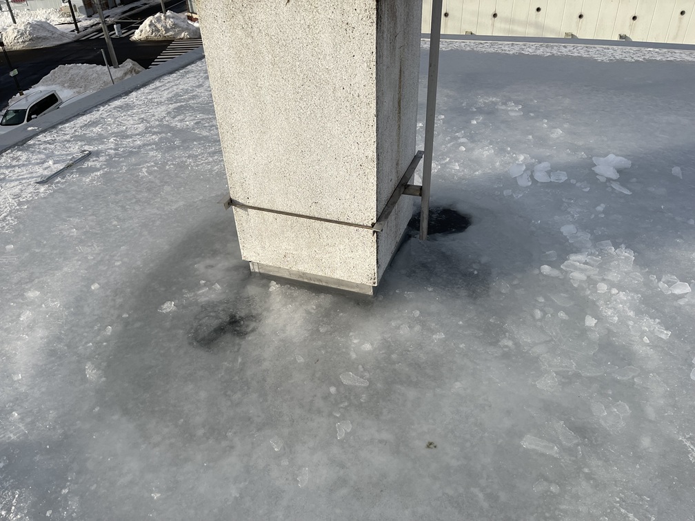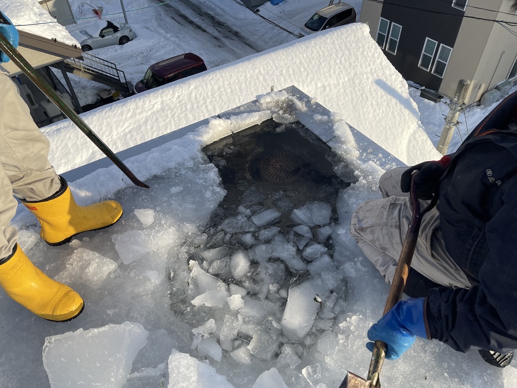 屋根は防水屋根で、排水用のダクト(ドレン)が設けられていましたが、