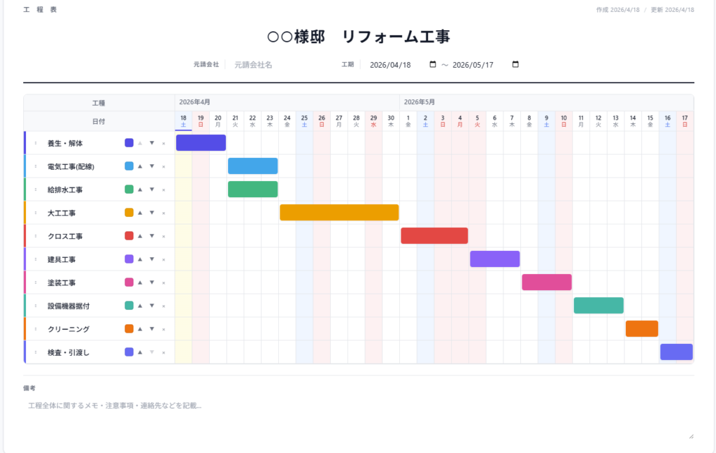 工程表を提出する機会は意外と多いのに、毎回Excelで一から作るのが地味につらい。