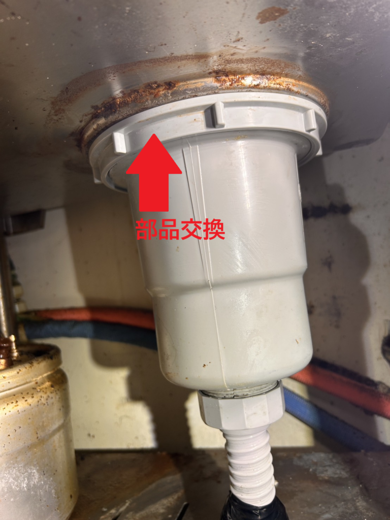 そこから排水が漏れて床に溢れていたことが判明しました。