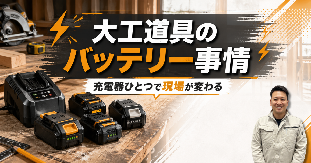 今回は「職人の視点」から、ちょっとマニアックだけど意外と奥深い話をしようと思います。テーマは電動工具のバッテリーと充電器について。