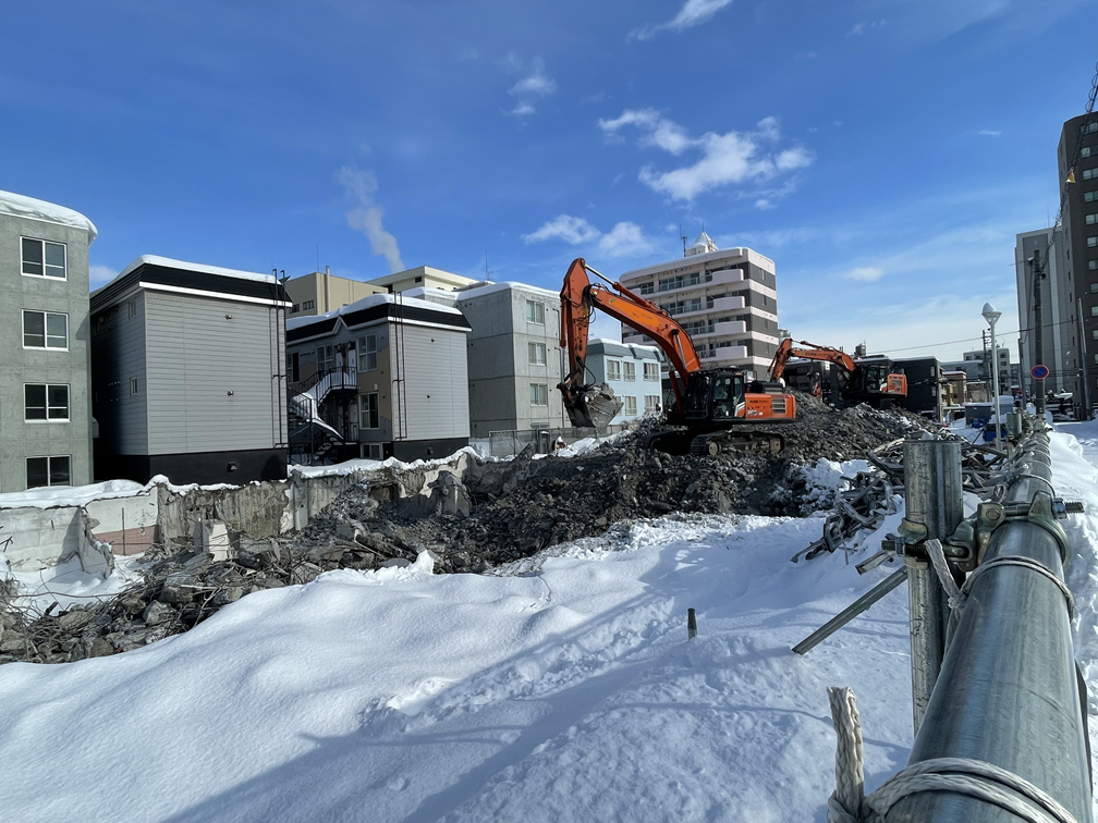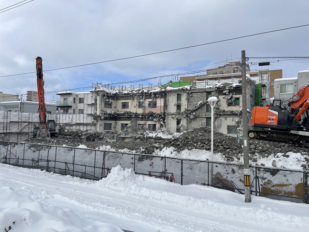 写真でも分かる通り、建物の形は大きく変わり、解体工事が確実に次の段階へ進んでいることが分かります。