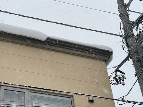 屋根の軒先(笠木の外側)にヒーターを設置する雪庇対策を行っています。